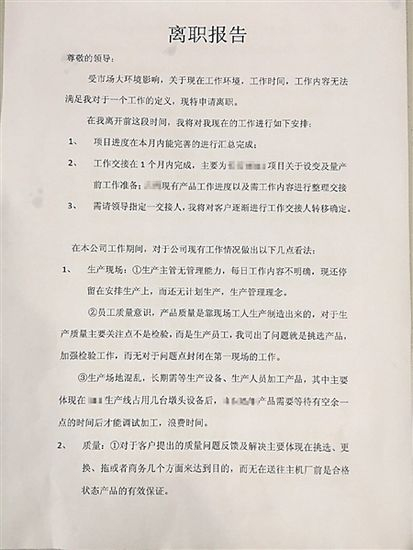 男子写“最走心”辞职信:长3页提14条建议(图)