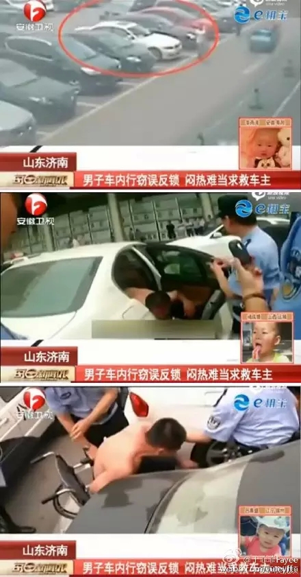 去年7月,在山东济南,一位笨贼钻进一辆宝马内行窃,一阵乱翻之后不小心将自己反锁在了车里,因天气酷热,小偷最后不得已,只能求救车主。随后赶到的警察将男子救出时,他已几近脱水状态。