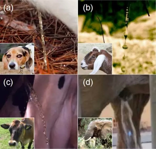高速摄像机记录:几乎所有哺乳动物都可以在21秒之内(误差不超过13秒)完成排尿。研究解释称,尿道的长度可以调节排尿速度。在动物的进化过程中,大型动物的尿道变长,帮助他们很快排尿。