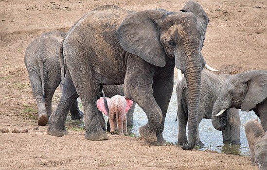 南非国家公园现罕见粉红色小象(图)