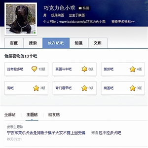 在宁波东钱湖开犬舍的王先生,平时经常在百度贴吧里与网友聊狗狗,他养的是名犬拉布拉多。但是从去年七八月份开始,有网友在百度贴吧中的“拉布拉多吧”上一直发帖说他是骗子,他说为此给他的犬舍带来很大损失。
