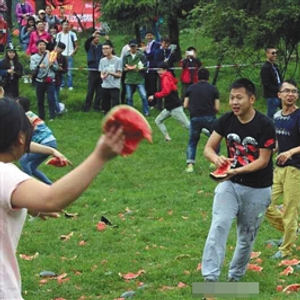 昨日,有媒体报道,为了解压,来自川渝的2000名大学生近日在某旅游景区内展开了西瓜大战,1小时砸掉的西瓜重达1吨。