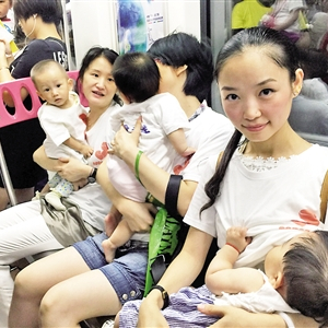 20位妈妈地铁哺乳快闪 乘客:眼不知往哪看(图)
