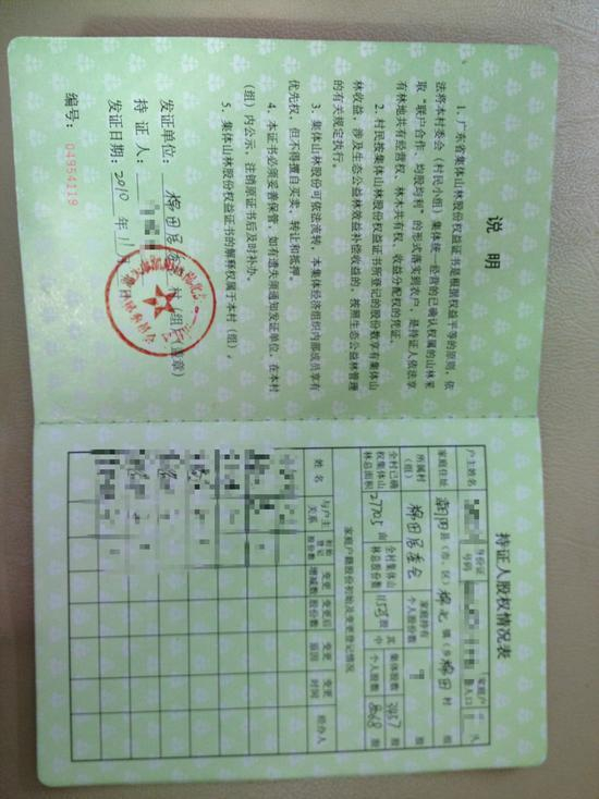 村民肖连平(化名)告诉南方农村报记者,村民原本不知道有山林股权证。“2015年11月,有人在居委会捡到了一本材料,打开一看,发现是社区发放山林股权证的登记表,于是就偷偷复印给村民看。”