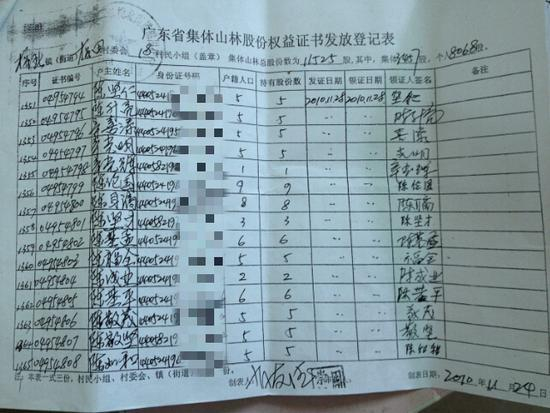 8月11日,棉北街道党工委书记赵钦彬告诉南方农村报记者,登记表是棉田居委会制作的,作为材料上报以领取山林股权证,并不是实际领取的情况登记表。