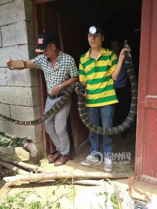 据记者从温州市森林公安了解到,2015年8月,在泰顺洲岭一村民家中也曾发生有十几斤重的眼镜王蛇闯入民宅的现象,当时蛇被抓获后还曾越狱,最终送往温州动物园安置。 (来自:浙江在线、温州网)