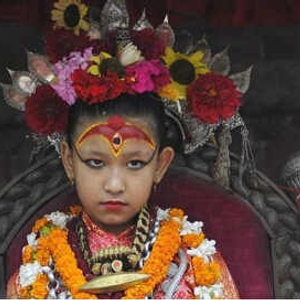 在很多国家,女神更多是一种精神文明的象征,而在尼泊尔,令人崇敬的女神却是真实存在的。据英国《每日邮报》报道,在尼泊尔首都加德满都以南约5公里的帕坦城,一名女孩因为“睫毛像母牛的睫毛般锐利,声音像鸭子的嗓音般清晰嘹亮”,在年幼时即通过严格挑选,被选为该地区的“活女神”。