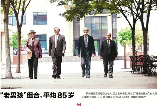 一年多之前,四位老人还互不相识,入住随园嘉树之后,四个人因为喜欢唱歌,组成了“随园老男孩”,有人还会叫他们“随园F4”、“随园花样男孩”。