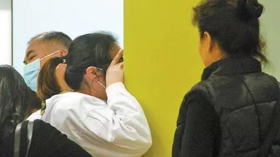 探视笑笑后的文芳放声大哭,罗尔和朋友在旁安慰。深圳晚报记者 李其聪 摄