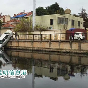 昆明信息港·都市时报 记者汪雨春 实习记者郎梦岚 3日上午7点多,一辆大众捷达车途径新河村观景路船房河时,由于刹车出现故障,车辆冲破护栏悬挂在半空中,车头进入水里,事发后,司机从驾驶室爬了出来,事故未造成人员伤亡。
