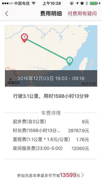 市民遭遇天价网约车费 3.1公里要付4万多元