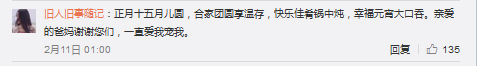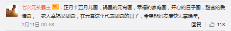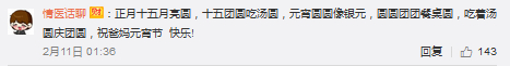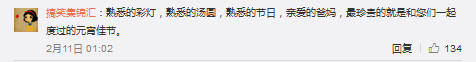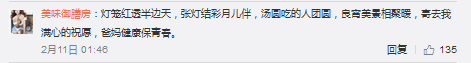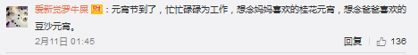 - 爱新觉罗牛屎:元宵节到了,忙忙碌碌为工作,想念妈妈喜欢的桂花元宵,想念爸爸喜欢的豆沙元宵。