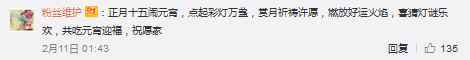 - 粉丝维护:正月十五闹元宵,点起彩灯万盏,赏月祈祷许愿,燃放好运火焰,喜猜灯谜乐欢,共吃元宵迎福