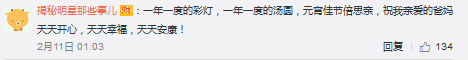 - 明星爆料工:思念揉成面,用快乐来作馅,加一勺甜蜜水,点一束平安火,熬成碗如意汤圆,祝爸妈健康快乐!
