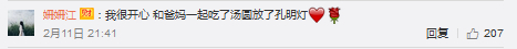 - 姍姍江:我很开心 和爸妈一起吃了汤圆放了孔明灯