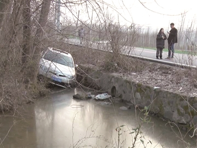 轿车避让横穿马路母子冲下路沟 母子未施救离开