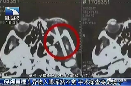 医生提示,一旦眼睛受到外部的伤害,一定要及时到医院检查,拍CT片以排除异物入眼的可能。