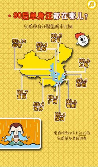 某婚恋平台曾对8128位90后单身者进行调查,调查发现沿海一二线城市,是90后单身的主要聚集地,在受访的单身用户里,生活在广州的最多,其次是深圳、上海、杭州、北京等。