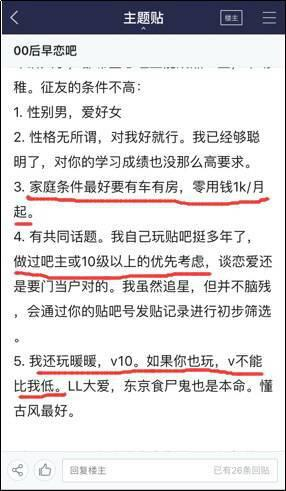 百度贴吧里的“00后早恋吧”里已经有了两千多万的帖子,去年还有一位00后曾贴出“征婚帖”: