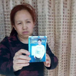 张母拿着儿子的照片,盼儿无罪归来
