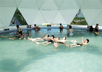 躺在盐卤温泉上看书