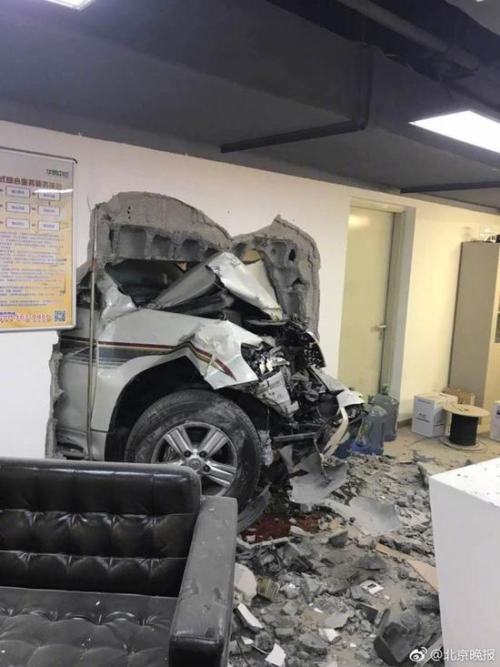 汽车穿墙而入冲进办公室
