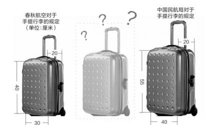 那么,春秋航空对于手提行李规定的20×30×40,低于上述20×40×55的标准,是否存在问题呢?