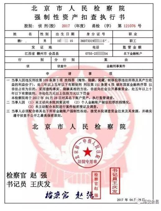 听说涉嫌重大案件,赖先生一直向对方辩解,希望“警方”能够查清楚,但当对方准确无误地报出自己的身份证号码、家庭住址以及户口本上的家庭成员信息后,赖先生完全相信对方确实是办案人员。随后,赖先生根据对方的指引登入假冒的“中华人民共和国最高检察院官方网站”查询,不仅看到了自己涉嫌的案件,而且看到了一份题为《北京市人民检察院强制性资产查扣执行书》的“法律文书”,于是按照对方的要求,把所有的银行卡上报,把网银全部带上到附近的酒店去开一个房住下,以免泄露“办案机密”。