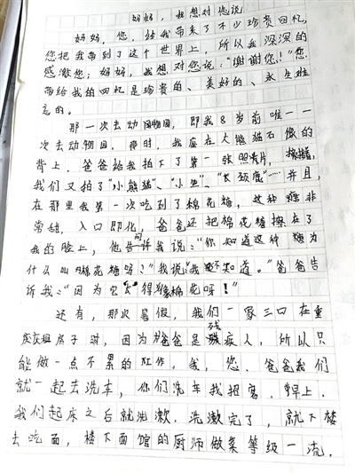 祝偲偲写给妈妈的信。