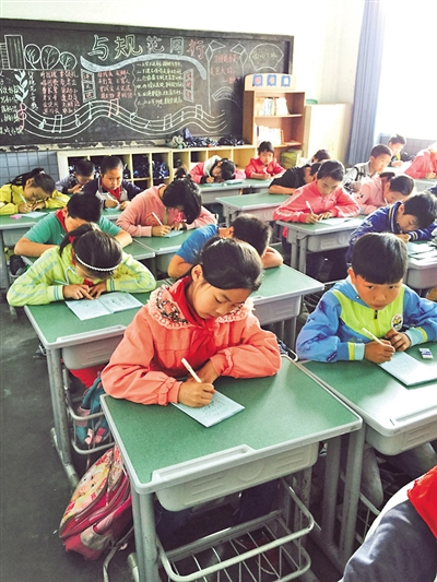 祝偲偲(前排左一)正在写作业。