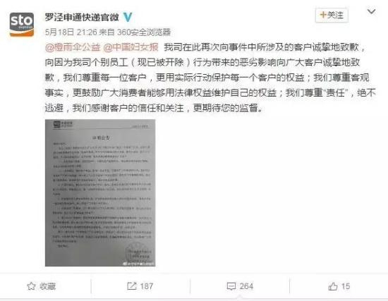 5月12号,上海姑娘穿睡裙在家门口收快递,竟被申通快递员袭胸!这件事在网上迅速发酵,申通官方给出了回应: