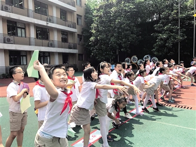 本报讯 (记者 杜海)“祝华新实验小学一天比一天好!”载着四年级小朋友美好祝愿的纸飞机在华新实验小学的操场上飞向天空。昨日上午,“创意纸飞机秀”第一站来到江北区华新实验小学,获得同学们热烈欢迎,活动还将走进全市11所学校。