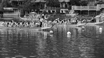 | 端午龙舟比赛在九龙坡金凤镇海兰湖举行。本报记者 胡杰 摄 |
