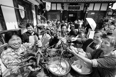 | 27日,巴南区丰盛古镇,草药飘香,居民们读诗词、看表演、包粽子,街头巷尾弥漫着浓浓的端午味道。 本报记者 杨新宇 摄 |