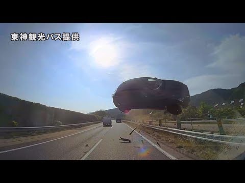 根据《朝日新闻》报导,黑色轿车因为失控冲进分隔岛,随后弹起来飞向对向车道,恰好撞上一辆载着47位游客的游览车,虽然游览车司机有转方向盘试着闪避,但因为时间太短根本闪不开,轿车直接砸中游览车上方,将车头挡风玻璃与前车顶削掉,画面看起来相当惊悚。