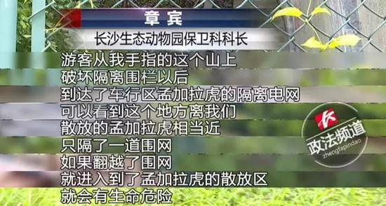 6月10日中午,长沙生态动物园发生了惊险一幕。三名游客从动物园后山翻越围栏进入园区,结果闯入了虎园放养区域附近,三人所处位置离放养的孟加拉虎只有50米远。