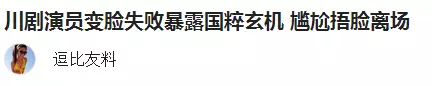 还有网友表示,砸了川剧的牌子,更有爆料调侃称“川剧演员变脸失败暴露国粹玄机,尴尬捂脸离场”。
