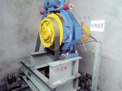 | 电梯间里可见这台电梯的主机没有转动。 |
