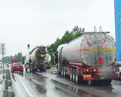 这两辆车为什么会发生追尾呢?槽罐车驾驶员表示,当时在下雨,视线不是很好,当他发现前面的搅拌车停止不动时,赶紧刹车,但这时两车之间的距离已经不够把车完全停下来了。因为车上装的是化学品,他不敢大动作转向,防止车辆侧翻造成次生灾害,所以硬着头皮撞了上去,所幸两车人员均无大碍。目前,交警部门已介入调查。(请报料人下周四五来领取信息费20元)