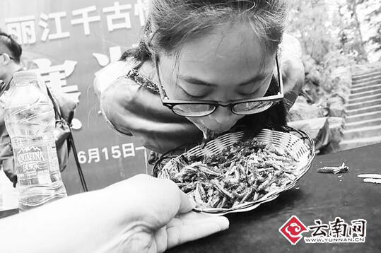 原标题:丽江一景区举行吃昆虫大赛 冠军5分钟吃1.23公斤你与24K金条之间差个能装千条虫的胃