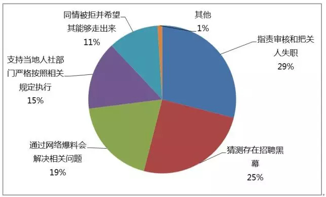 首先是就业形势较严峻,人们的就业焦虑和不安全感在增强。公务员和事业单位被看做是就业的“最佳选择”,人们更加重视这样的就业机会和环境,甚至,广大民众也会将自己想象成涉事应聘者,从而加重他们的焦虑和不安全感,并希望通过网络得以宣泄和得到慰藉。