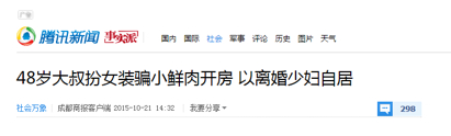 其中那条聊天记录的图片,来自于《成都商报》2015年时报道过的一则“48岁大叔假扮少女骗人开房,盗窃他人钱财”的新闻。图片中描述的实际场景系作案嫌疑人与受害者互动的过程。