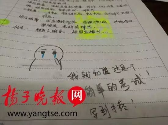 原标题:南京高校考试考“斗图”:画出考试时心情