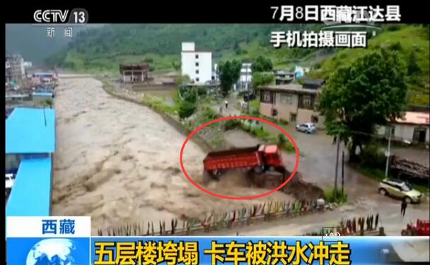 央视网消息:连日来,西藏东部的昌都市境内普降大雨,持续时间较长,部分时段和地区甚至暴雨,导致河水猛涨,其中江达县一栋居民楼垮塌,河边一辆大货车被冲走,多处国道乡道出现中断。