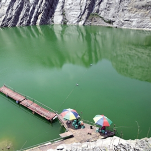 说到中梁山的水景,有一种特别的景观不得不说。曾经,作为重庆主城最大的建筑石料出产地,这里大大小小的采石场达100多家。2007年,为保护包括中梁山在内的主城“四大肺叶”,市里颁发了关停的政府令,到2010年冬天,镇上最后一个采石场正式关闭。7年过去了,虽然采石场的矿坑遗址还在,但绝大多数已呈“高山湖泊”的独特景观,一汪汪碧绿的湖水,倒映着刀削斧劈般的白色绝壁,在蓝天白云的映衬下,却有一种苍凉的美感。由于中梁山的石头富含石灰质,矿坑的水面呈现出淡淡的蓝色,被许多网友誉为重庆的“小九寨”。