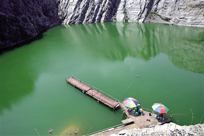 | 被网友誉为“小九寨”的矿坑湖泊。 |