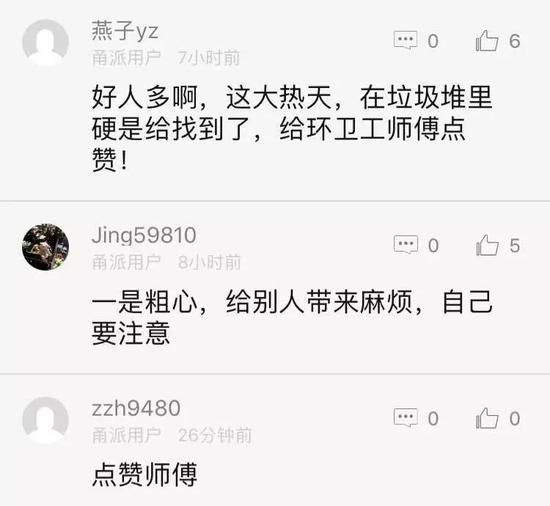 “当时真的非常感动,这么大热天,把一车垃圾倒出来翻找。现场污水横流,发出阵阵臭味。环卫站的师傅们在烈日下满头是汗,衣服鞋子都湿透了,非常不容易。”张先生说,因自己的粗心大意给出租车驾驶员、出租车公司,派出所民警、环卫站、环卫师傅额外添加了工作量,十分抱歉又十分感激。