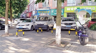 华创步行街周边商户透露,这类现象并不少见。仅仅在人行道不足十余平方米空地上,时常会有部分不守规矩的车主巧妙避开市政部门在人行区域设置的U形地桩,强行开上人行道停车。