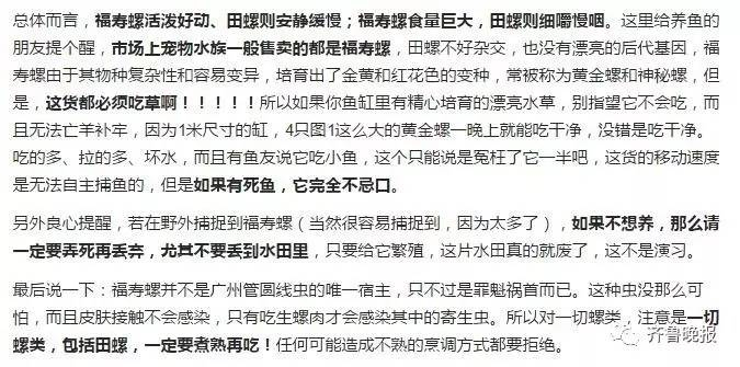 福寿螺与田螺相似,但形状、颜色、大小有区别。