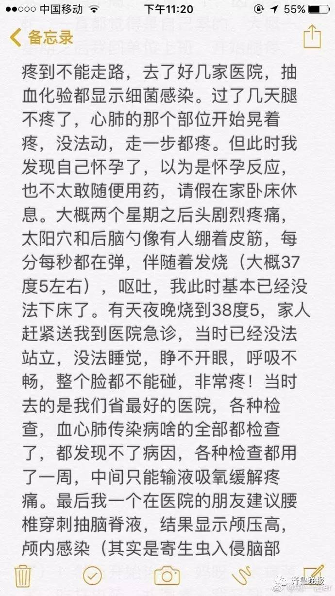 原标题:恐怖!网友旅游误食福寿螺,寄生虫入侵脑部!腰部穿刺就做了六次,治疗半年后被迫流产。。。